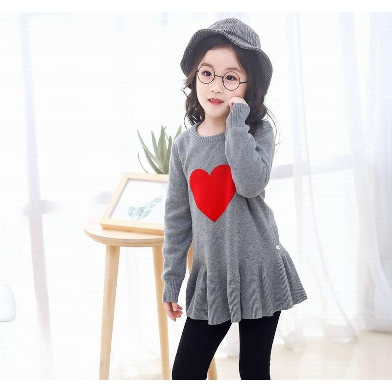 ニットワンピース キッズワンピース ハート フリル リブ袖 ニットプルオーバー ラウンドネック 長袖 ニットワンピ セーター キッズ ベビー キッズ用 Top プラスナオyahoo 店 通販 Yahoo ショッピング